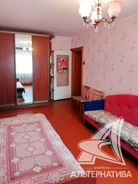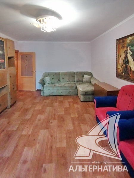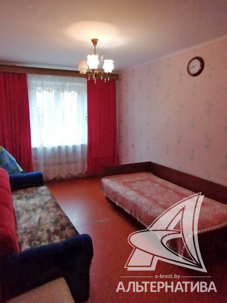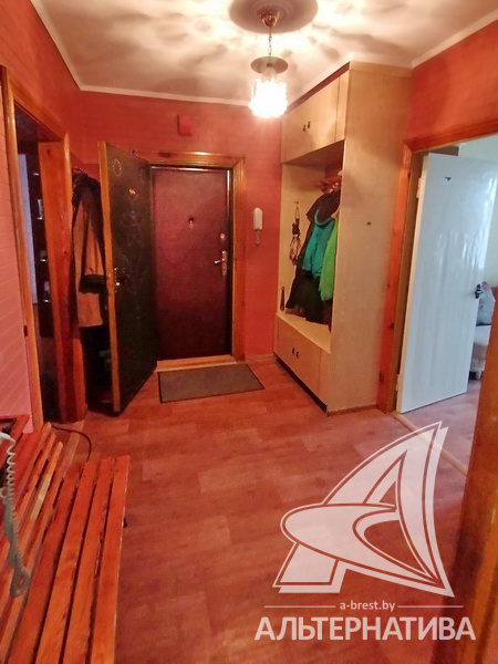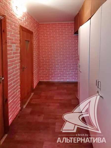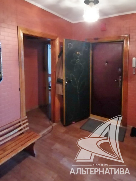 4-комнатная квартира, г. Брест, ул. Строительная, 1991 г.п., 3 / 5 панель, 83,8 / 80,4 / 54,0 / 9,3, санузел раздельный, подвал, две лоджии застеклены, стеклопакеты, межкомнатные двери – МДФ и ДВП, входная дверь металлическая, потолки - снежка (2,50 м), полы - ДСП (одна комната) и линолеум, стены оклеены обоями, чугунная ванна, новый электросчетчик, телефон, домофон. Квартира в жилом состоянии. На площадке имеется закрытое место для колясок и велосипедов.