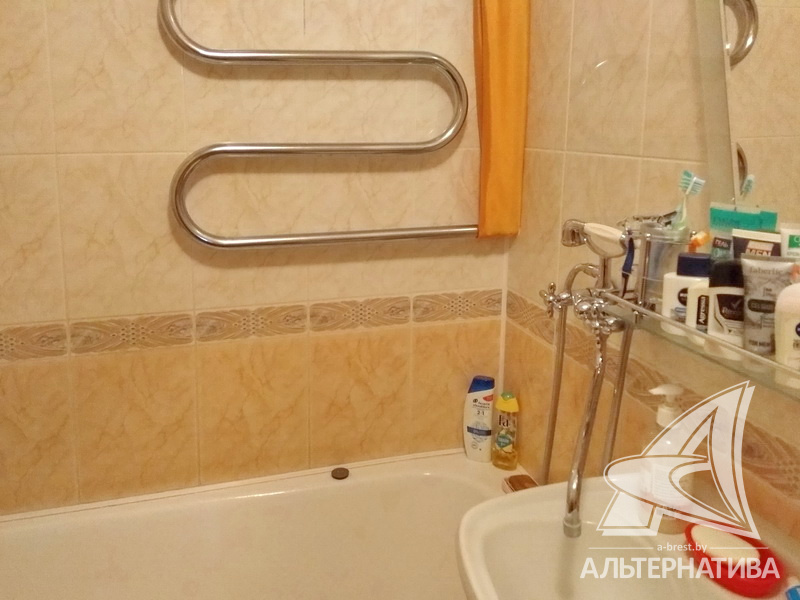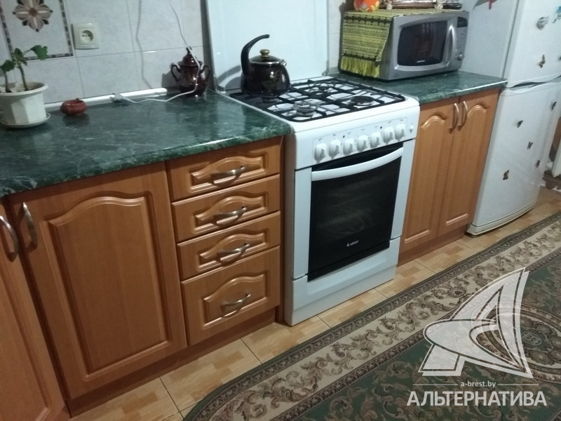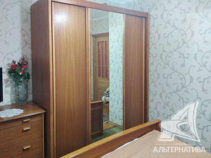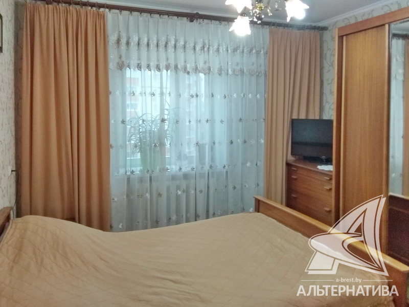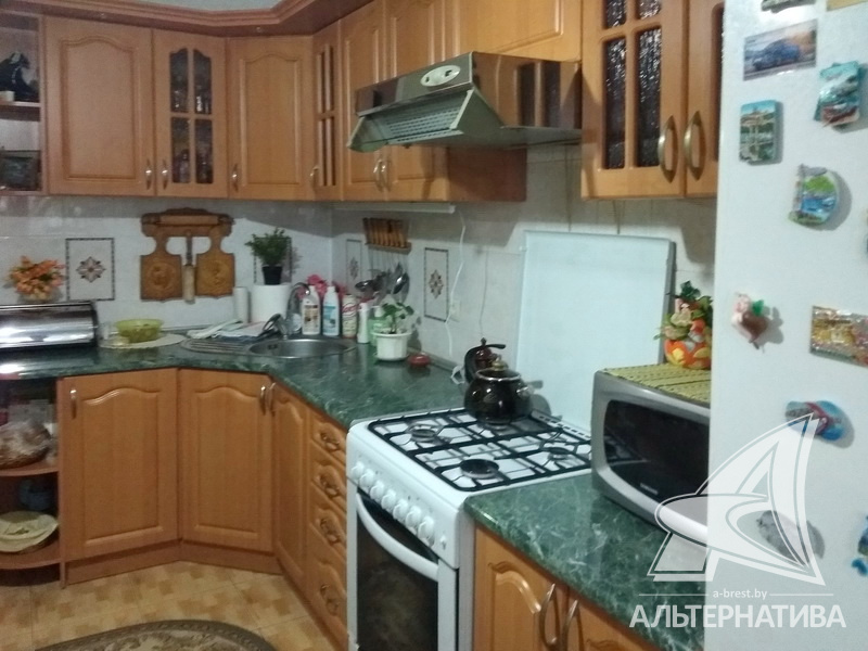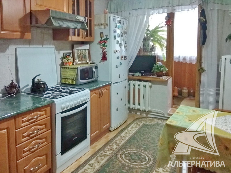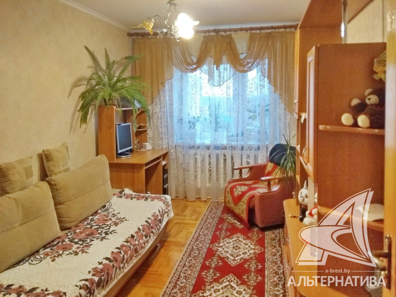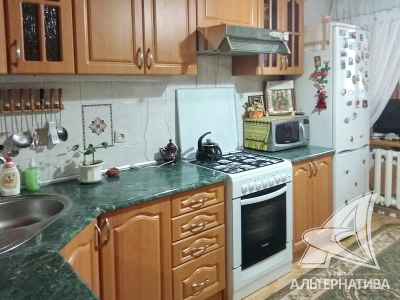 3-комнатная квартира, г. Брест, ул. Московская, 1994 г.п., 5 / 5 кирпич, 68,3 / 66,1 / 39,6 / 10,8, санузел раздельный, подвал, лоджия застеклена, деревянные двухкамерные стеклопакеты, межкомнатные двери - массив (ясень), входная дверь деревянная, потолки - снежка (2,50 м), полы - паркет (дуб, ясень) и плитка, стены оклеены обоями, в санузле современная плитка, заменен полотенцесушитель, чугуная ванна, заменены сантехнические трубы (пластик), новый электросчетчик, телефон, домофон. Встроенный шкаф в спальне, встроенный кухонный гарнитур, газовая плита, вытяжка. Квартира с хорошим ремонтом. Квартира расположена на две стороны. Окна выходят на зеленую зону. Технический этаж. Чистый подъезд. Во дворе парковка для автомобилей. Дом расположен в глубине двора.