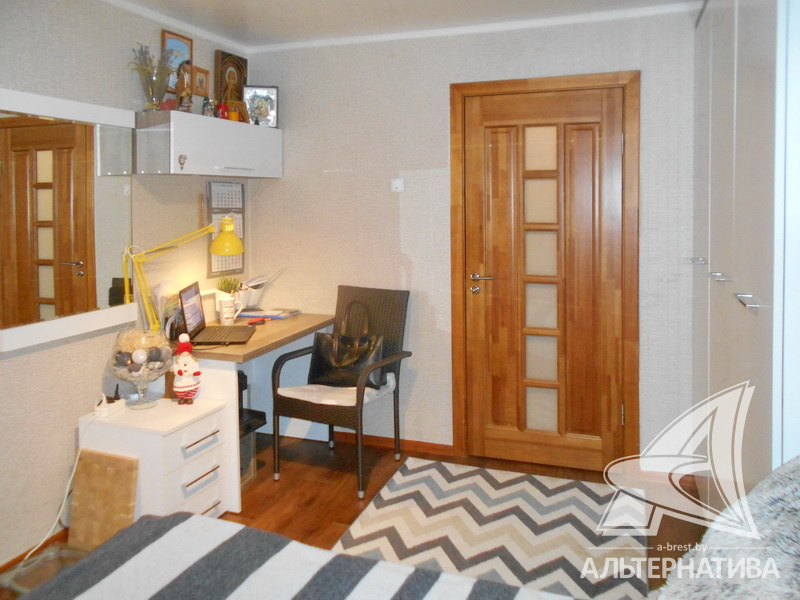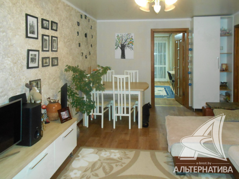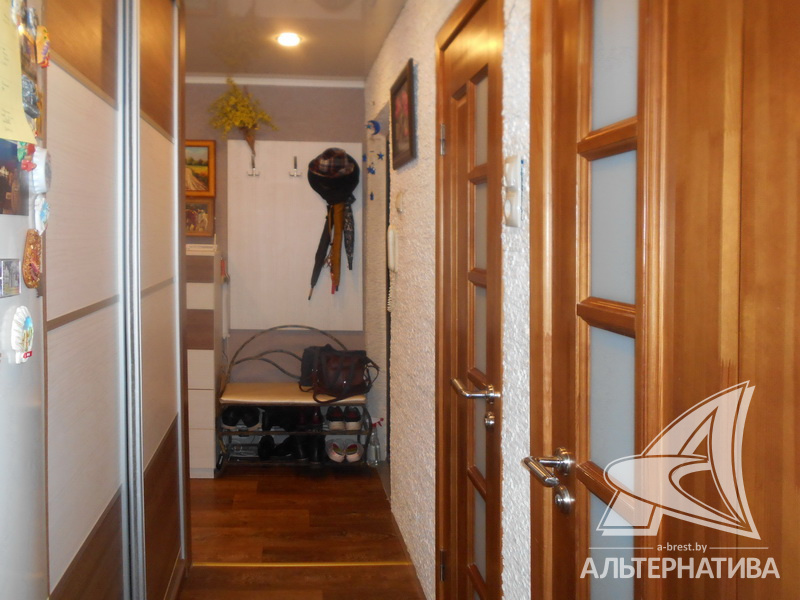 3-комнатная квартира, г. Брест, ул. Московская, 1971 г.п., 6 / 9 кирпич, 64,0 / 62,4 / 43,5 / 5,9, санузел раздельный, лоджия застеклена, деревянные стеклопакеты, межкомнатные двери - массив, входная дверь металлическая, натяжные потолки (глянец - коридор, сатин) (2,47 м), полы - линолеум (положен на доску), стены оклеены обоями, отделка камнем в прихожей, новый электросчетчик, в санузле современная плитка, заменен полотенцесушитель, акриловая ванна, заменены сантехнические трубы (пластик), телефон, домофон. Встроенный кухонный гарнитур, варочная поверхность, духовой шкаф, вытяжка. Шкаф-купе в прихожей, спальный гарнитур. Квартира с хорошим ремонтом. Квартира расположена на две стороны. Чистый подъезд. Один пассажирский лифт. Во дворе парковка для автомобилей. Дом расположен в глубине двора.
