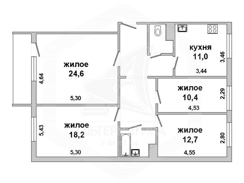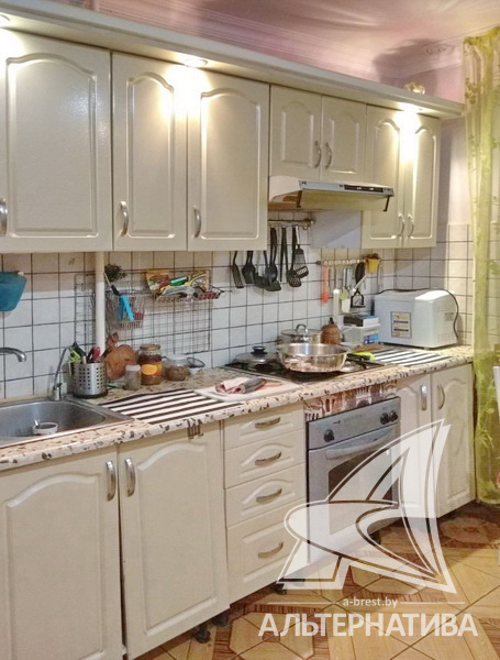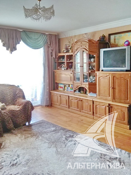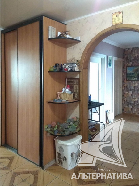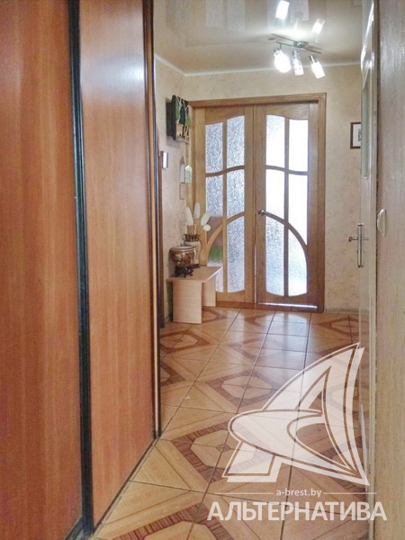 4-комнатная квартира, г. Брест, ул. Янки Купалы, 1996 г.п., 5 / 10 панель, 102,9 / 100,6 / 65,9 / 9,0, санузел раздельный, подвал, лоджия застеклена, стеклопакеты, межкомнатные двери – экошпон, входная дверь металлическая, потолки - из гипсокартона, натяжные, полы - паркетная доска, плитёка (кухня, прихожая) (положены на стяжку), стены оклеены обоями, в санузле современная плитка, телефон, домофон. Кухонный гарнитур, шкаф-купе. Квартира в жилом состоянии. Один пассажирский лифт. Дом расположен в глубине двора.
