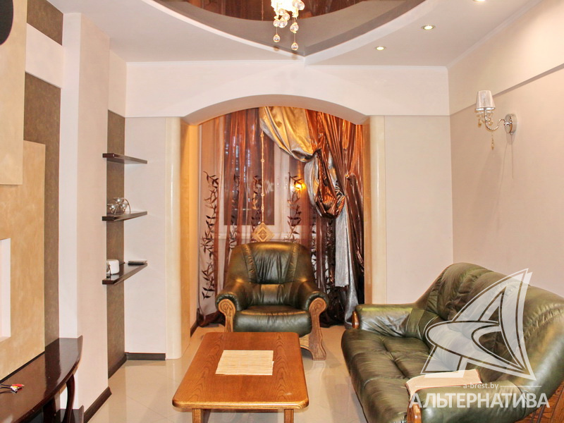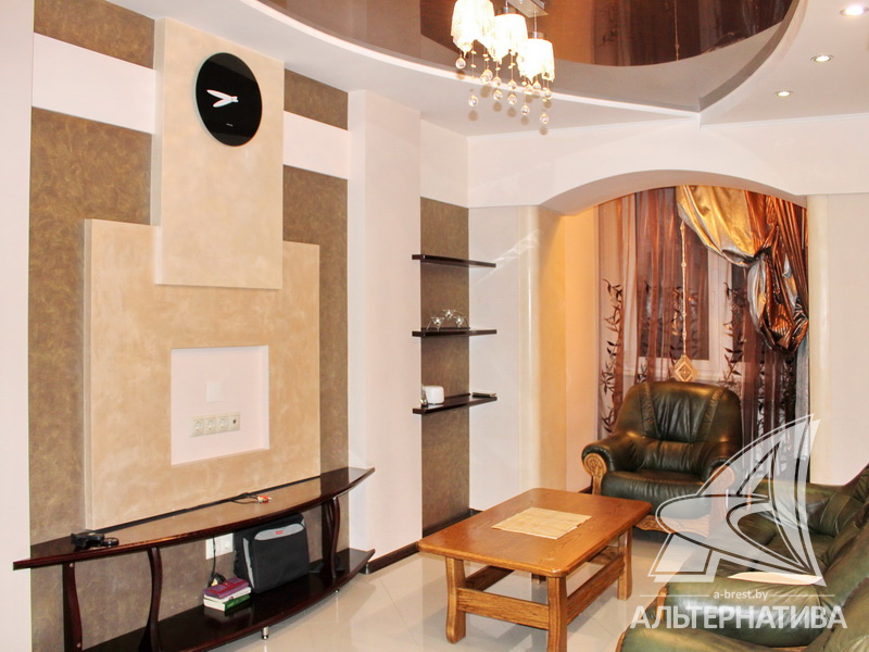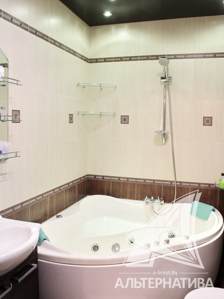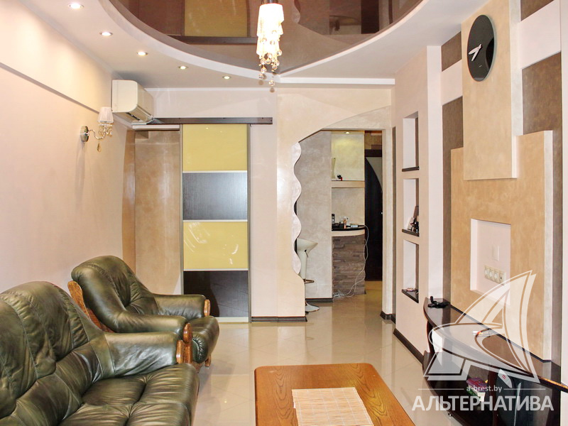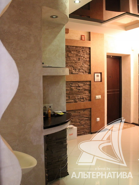 2-комнатная квартира, г. Брест, б-р Космонавтов, 1966 г.п., 3 / 5 кирпич, 53,5 / 53,5 / 31,9 / 7,2, санузел совмещенный, подвал, стеклопакеты, межкомнатные двери - массив (ольха), входная дверь металлическая, натяжные многоуровневые потолки с интересной системой освещения (2,52 м), полы - плитка, с подогревом - в ванной, прихожей, на кухне, в комнатах (регуляторы в каждом помещении), декоративная отделка венецианской штукатуркой, в санузле современная плитка, заменена сантехника, заменен полотенцесушитель, джакузи, заменены сантехнические трубы, проведена новая электропроводка, установлены новые радиаторы, два кондиционера (в спальне и в зале), установлены фильтры очистки воды, новый электросчетчик, телефон, домофон. Квартира находится под охраной. Кухонный гарнитур, барная стойка, духовой шкаф, варочная поверхность, вытяжка, стиральная машина. Шкаф-купе, шкаф в спальне, кровать, прикроватные тумбы. Квартира с индивидуальными дизайнерскими решениями.