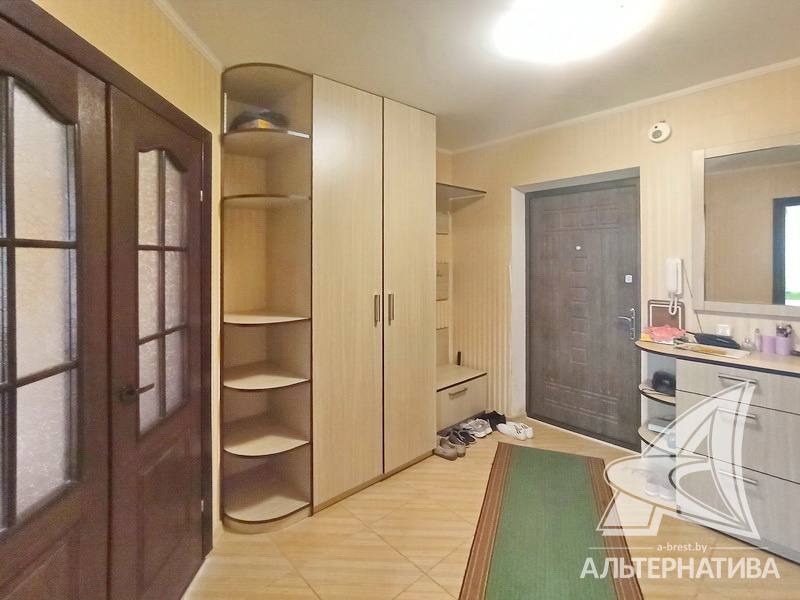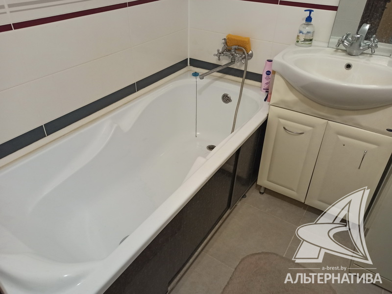 1-комнатная квартира, г. Брест, ул. Махновича, 2013 г.п., 1 / 9 монолит, 40,6 / 38,5 / 15,9 / 9,0, санузел раздельный, лоджия застеклена, стеклопакеты, межкомнатные двери – шпон, входная дверь металлическая, потолки - снежка (2,52 м), полы - ламинат и плитка (коридор, кухня), стены оклеены обоями, в санузле современная плитка, акриловая ванна, телефон, домофон. Кухонный гарнитур, варочная панель. Диван, прихожая, стиральная машина. Квартира с хорошим ремонтом. Чистый подъезд. Один пассажирский лифт. Тамбур на две квартиры. Дом оборудован пандусом. Во дворе игровая детская площадка, парковка для автомобилей.