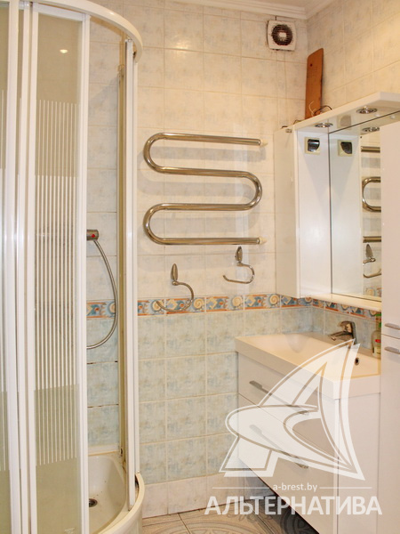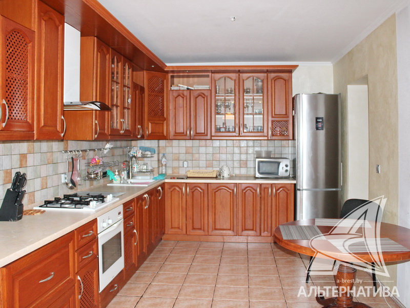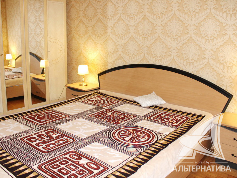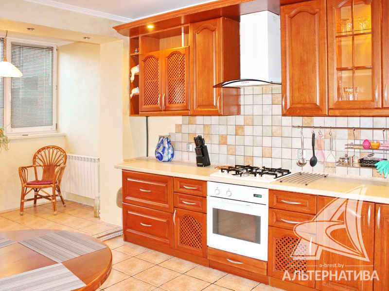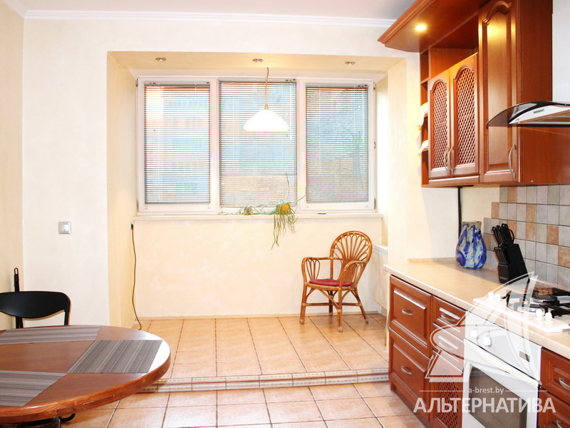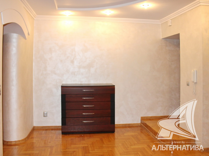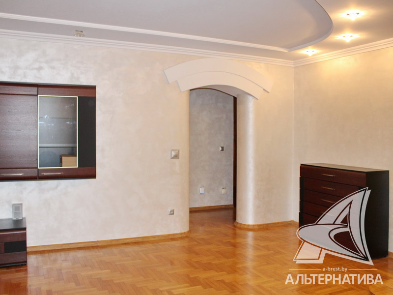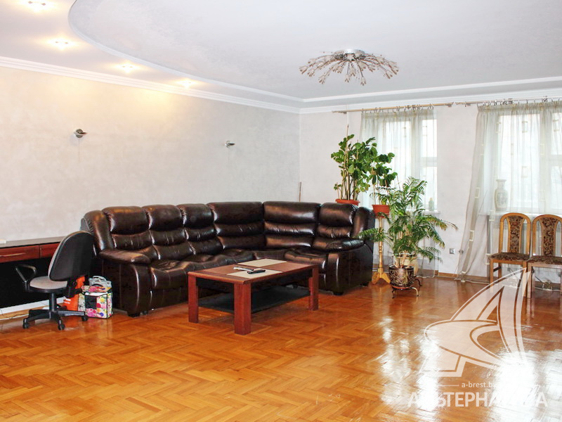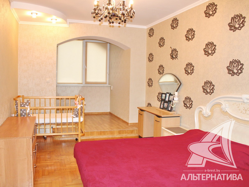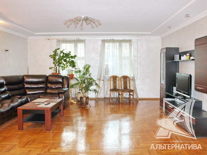3-комнатная квартира, г. Брест, ул. Краснознаменная, 2000 г.п., 1 / 10 кирпич, 97,8 / 94,3 / 69,5 / 13,2, санузел раздельный, подвал, две лоджии застеклены, стеклопакеты, деревянные окна, межкомнатные двери - массив, потолки - снежка, из гипсокартона, многоуровневые, с интересной системой освещения (2,52 м), полы - новый паркет и плитка, домофон. Встроенный кухонный гарнитур, шкаф-купе в прихожей. Квартира с хорошим ремонтом. Все окна выходят во двор. Чистый подъезд. Высокий цоколь.