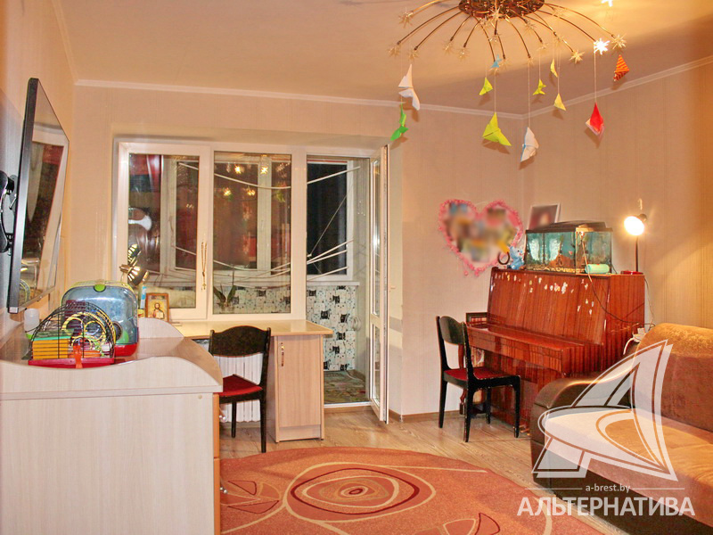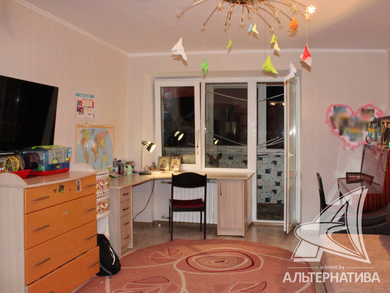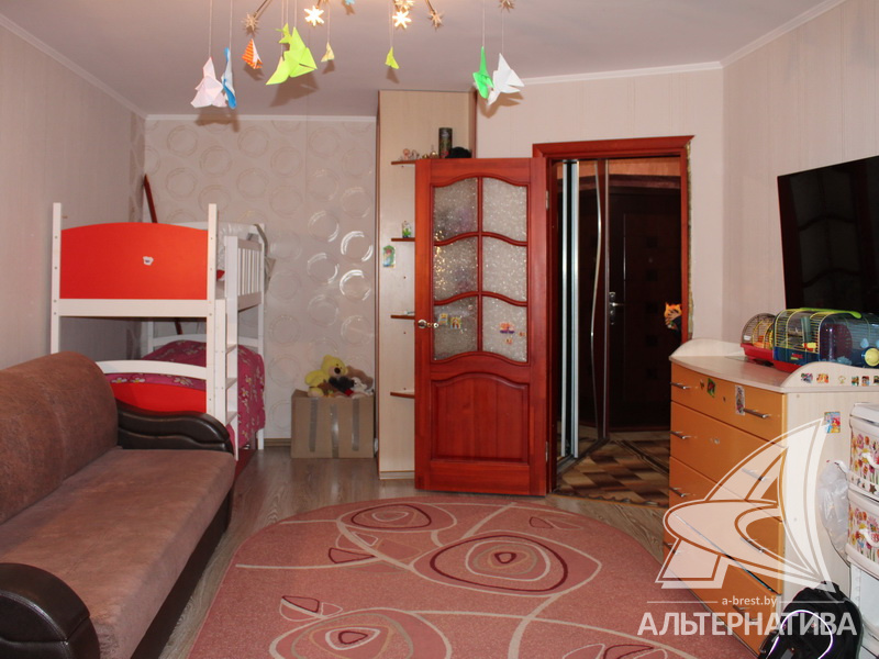 Срочно! 1-комнатная квартира, г. Брест, ул. Дубровская, 2007 г.п., 4 / 5 кирпич, 43,1 / 38,9 / 19,8 / 9,2, санузел раздельный, подвал, лоджия застеклена, двухкамерные стеклопакеты, межкомнатные двери - массив (орех), входная дверь металлическая, потолки - снежка и из гипсокартона, полы - ламинат и плитка (кухня - с подогревом) (положены на стяжку), стены оклеены обоями, в санузле современная плитка, чугунная ванна, телефон, домофон. Кухонный гарнитур, два шкафа-купе. Остальная мебель по договоренности. На площадке имеется закрытое место для колясок и велосипедов. Во дворе игровая детская площадка, парковка для автомобилей.