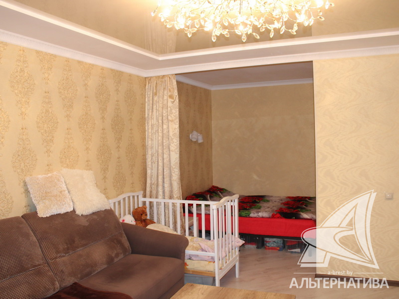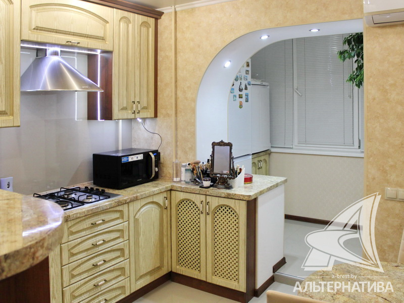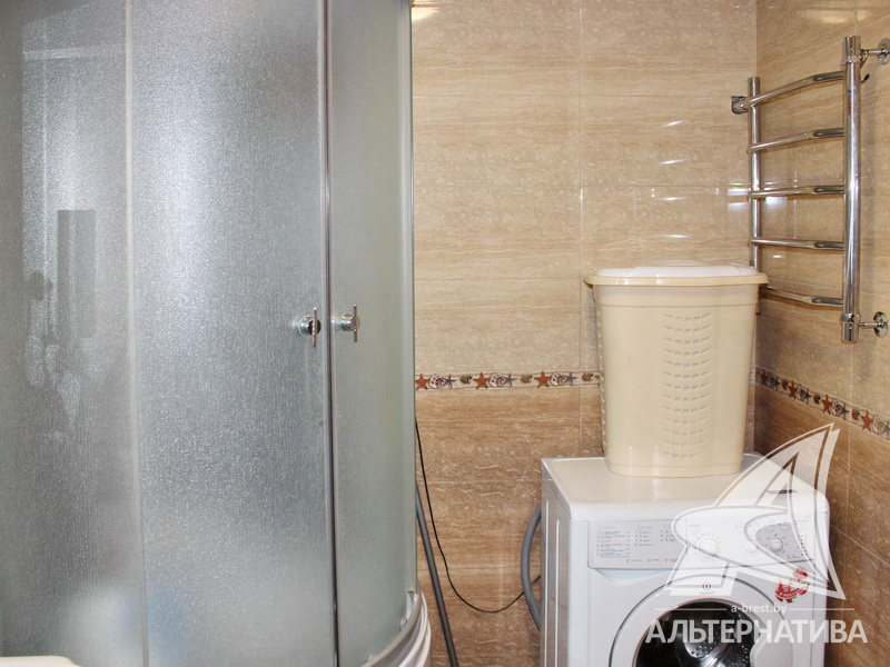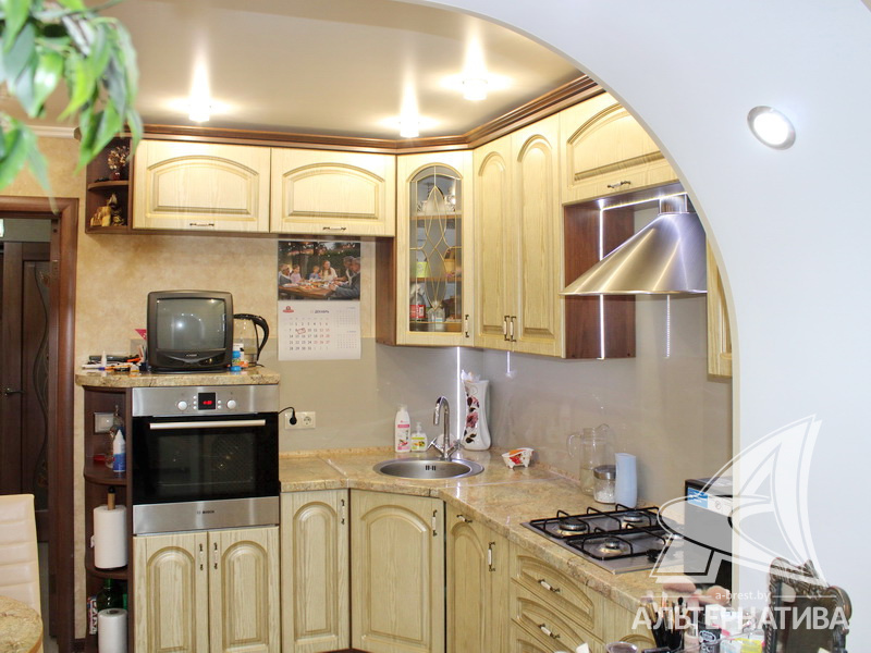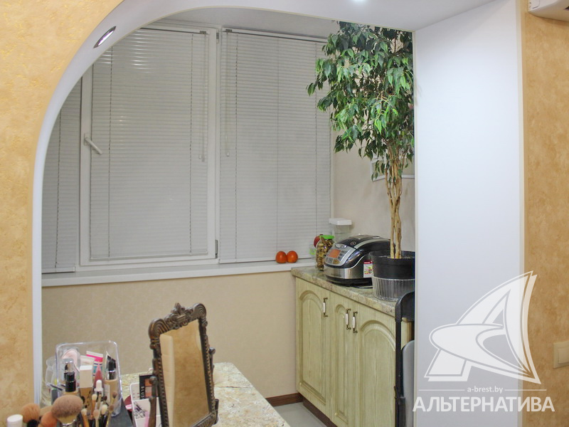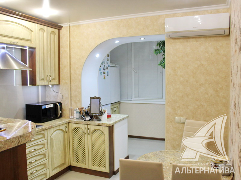 1-комнатная квартира, г. Брест, ул. Московская, 2005 г.п., 4 / 5 блок, 45,7 / 43,9 / 25,0 / 8,0, санузел совмещенный, подвал, лоджия застеклена, стеклопакеты, межкомнатные двери - массив, комбинированные потолки с интересной системой освещения (2,52 м), полы - ламинат и плитка (кухня, коридор), стены оклеены обоями, в санузле современная плитка, заменена сантехника, заменен полотенцесушитель, заменены сантехнические трубы, кондиционер, телефон, домофон. Встроенный кухонный гарнитур, варочная поверхность, духовой шкаф, посудомоечная машина, вытяжка, холодильник. Шкаф-купе. Квартира с индивидуальными дизайнерскими решениями. Чистый подъезд.