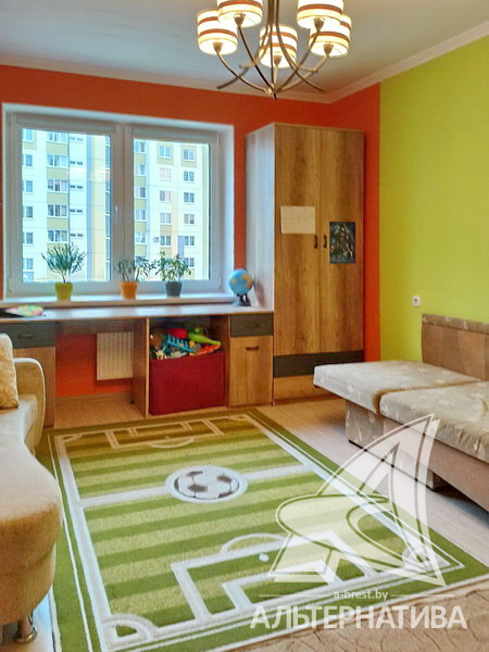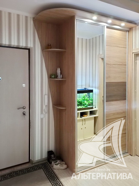 2-комнатная квартира, г. Брест, ул. Луцкая, 2017 г.п., 4 / 10 панель, 61,9 / 59,5 / 34,3 / 10,3, санузел раздельный, лоджия застеклена, стеклопакеты, межкомнатные двери – МДФ, входная дверь металлическая, потолки - снежка, полы - ламинат, стены оклеены обоями, в санузле окрашены, телефон, домофон. Кухонный гарнитур, два шкафа-купе в прихожей. Новостройка с ремонтом от застройщика. Все окна выходят во двор. Тамбур на две квартиры. На площадке имеется закрытое место для колясок и велосипедов. Во дворе игровая детская площадка, парковка для автомобилей.