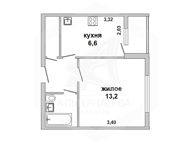 | Жилая площадь | 13.2 м² |