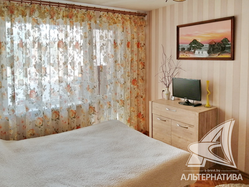 2-комнатная квартира, г. Брест, ул. Орловская, 1982 г.п., 1 / 5 панель, 51,8 / 49,7 / 29,5 / 7,53, санузел раздельный, лоджия застеклена, погреб, стеклопакеты, межкомнатные двери - МДФ, натяжные потолки (в спальне) и снежка (2,50 м), полы - линолеум, стены оклеены обоями, в санузле современная плитка, телефон, домофон. Кухонный гарнитур, шкаф-купе в спальне, вытяжка. Квартира с хорошим ремонтом. Окна выходят на парк. Чистый подъезд.