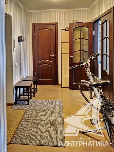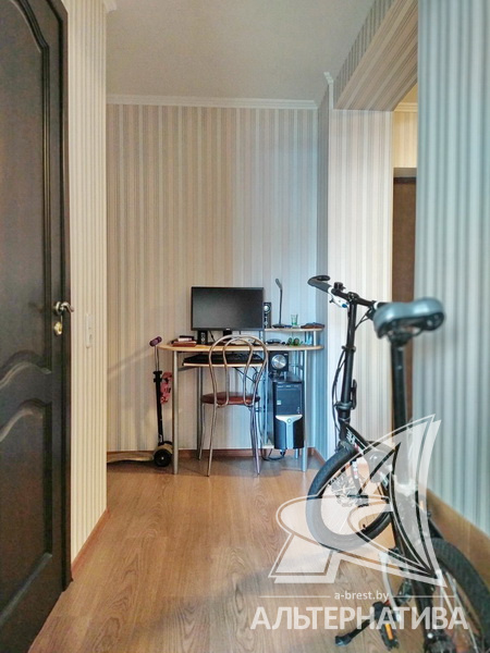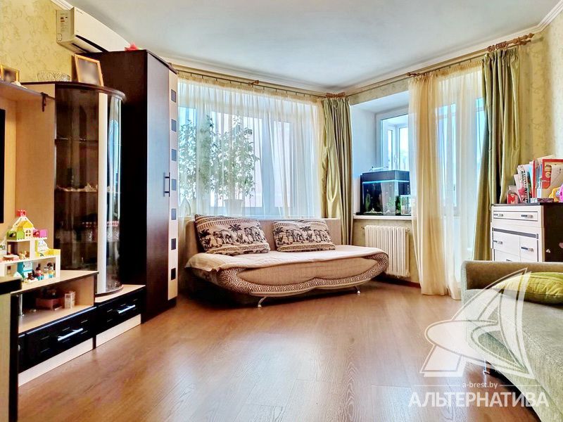 1-комнатная квартира, г. Брест, ул. Воровского, 2009 г.п., 2 / 9 кирпич, 49,2 / 44,3 / 19,2 / 9,1, санузел раздельный, лоджия застеклена, стеклопакеты, межкомнатные двери – МДФ, входная дверь металлическая, потолки - снежка (2,53 м), полы - ламинат, стены оклеены обоями, в санузле современная плитка, заменена сантехника, телефон, домофон. Кухонный гарнитур, оборудована гардеробная. Квартира с хорошим ремонтом. Один пассажирский лифт.