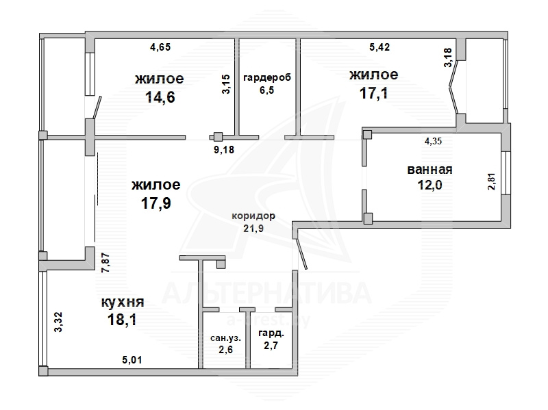 | Площадь кухни | 18.1 м² |