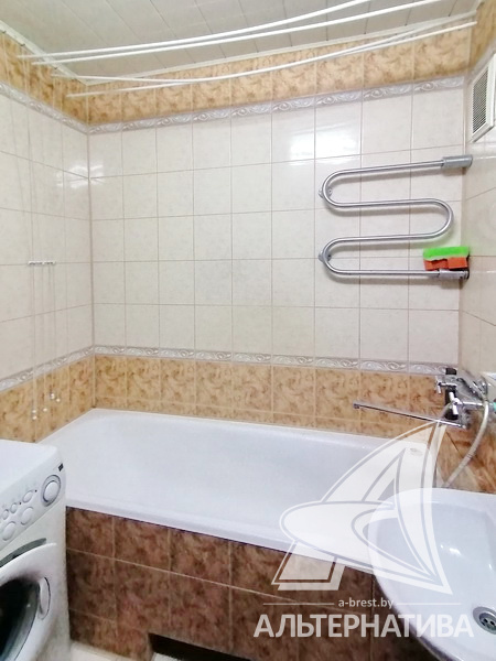 2-комнатная квартира, г. Брест, ул. Красногвардейская, 1996 г.п., 3 / 9 кирпич, 49,3 / 47,9 / 27,1 / 6,6, санузел раздельный, подвал, лоджия застеклена, стеклопакеты, межкомнатные двери - массив, входная дверь металлическая, потолки - натяжные и сайдинг (кухня), стены оклеены обоями, в санузле заменена сантехника, новый электросчетчик, телефон, домофон. Кухонный гарнитур (вытяжка, варочная панель). Шкаф-купе. Корпусная встроенная мебель в спальне. Квартира с хорошим ремонтом. Один пассажирский лифт. Во дворе игровая детская площадка, парковка для автомобилей. Дом расположен в глубине двора.
