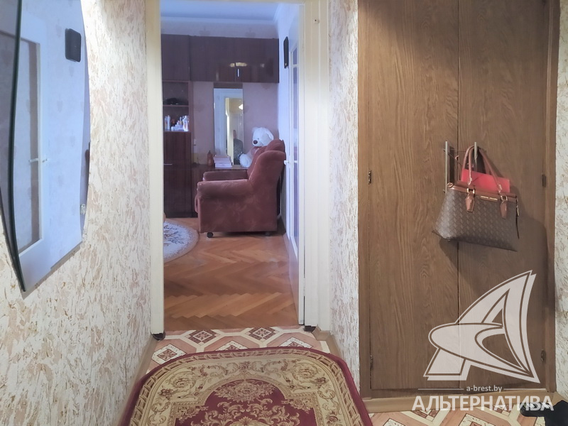 2-комнатная квартира, г. Брест, ул. Московская, 1971 г.п., 4 / 5 панель, 39,3 / 38,4 / 22,9 / 5,5, санузел совмещенный, балкон застеклен, стеклопакеты, межкомнатные двери – МДФ, входная дверь металлическая, потолки - снежка и натяжные (сатин - кухня), полы - паркет и линолеум, стены оклеены обоями, в санузле современная плитка, заменена сантехника, телефон, домофон. Кухонный гарнитур. В квартире частично произведен ремонт. Чистый подъезд.