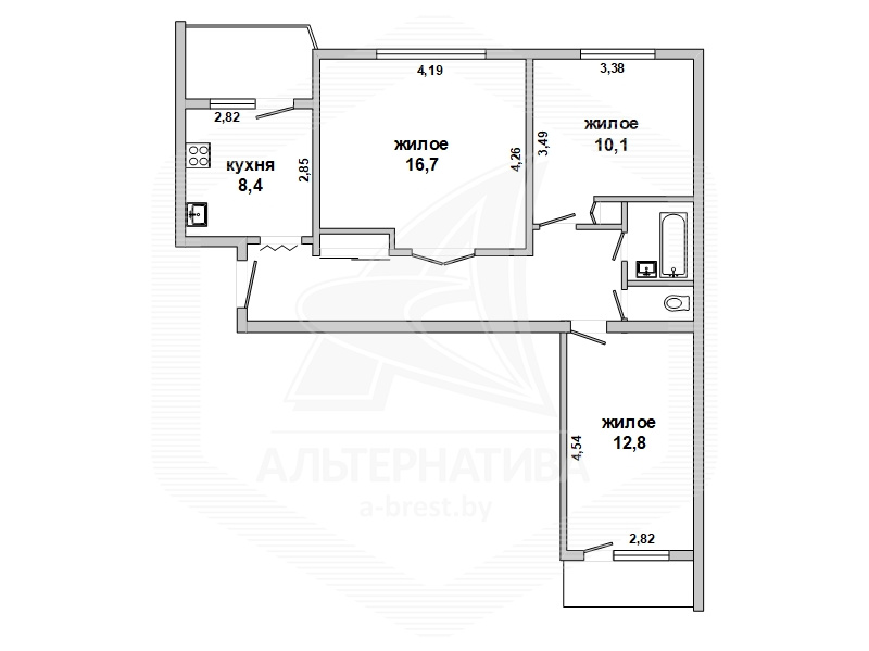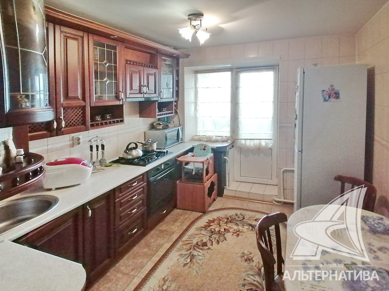 3-комнатная квартира, г. Брест, ул. Адамковская, 1983 г.п., 9 / 9 кирпич, 68,5 / 64,6 / 39,6 / 8,4, санузел раздельный, две лоджии застеклены, стеклопакеты, межкомнатные двери – МДФ, входные двери двойные - металлическая и деревянная, потолки - побелка и одноуровневые (2,42 м), полы - ламинат, в санузле современная плитка, телефон, домофон. Встроенный кухонный гарнитур, встроенный шкаф в прихожей. Квартира в жилом состоянии. Квартира расположена на две стороны. Чистый подъезд. Один пассажирский лифт.