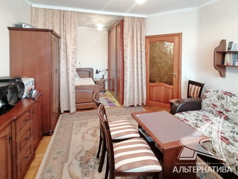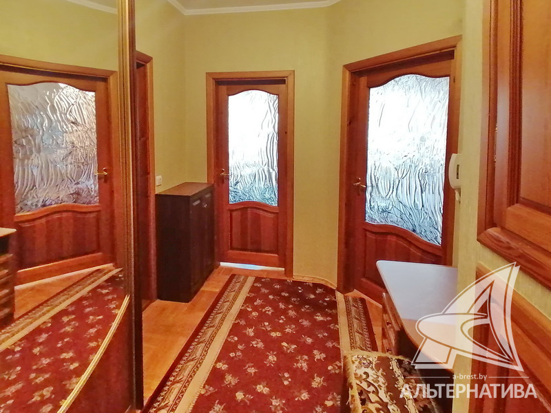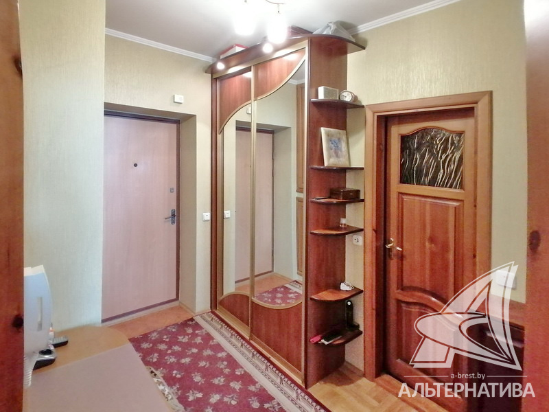 1-комнатная квартира, г. Брест, ул. Вольная, 2004 г.п., 3 / 5 кирпич, 42,9 / 38,8 / 19,3 / 9,5, санузел совмещенный, подвал, лоджия застеклена, двухкамерные стеклопакеты, межкомнатные двери - массив (сосна), входная дверь металлическая, одноуровневые потолки - снежка (2,72 м), полы - паркет, в санузле современная плитка, домофон. Кухонный гарнитур, шкаф-купе. Квартира с хорошим ремонтом. Чистый подъезд. Тамбур на три квартиры. Во дворе игровая детская площадка, парковка для автомобилей. Дом расположен в глубине двора.