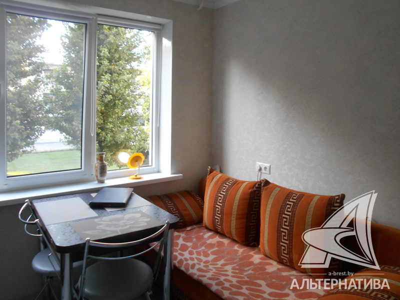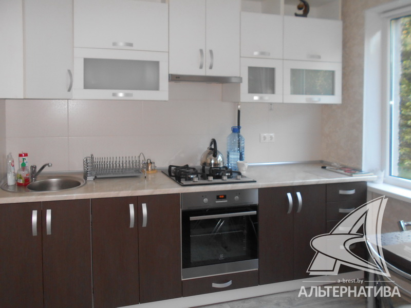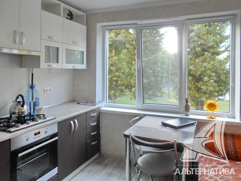 1-комнатная квартира, г. Брест, ул. Янки Купалы, 1981 г.п., 2 / 5 панель, 34,8 / 32,4 / 12,2 / 9,6, санузел раздельный, лоджия застеклена, потолки - натяжные и снежка (2,50 м), частично стеклопакеты, полы - ламинат и линолеум, современная плитка, новая сантехника, межкомнатные двери - МДФ, входная дверь деревянная, телефон, домофон. Встроенный кухонный гарнитур, варочная панель, два встроенных шкафа-купе. Квартира с хорошим ремонтом.