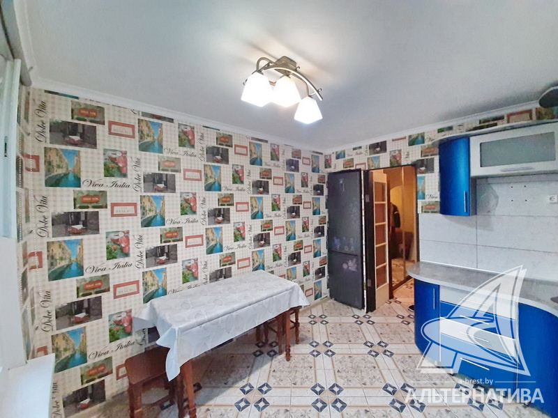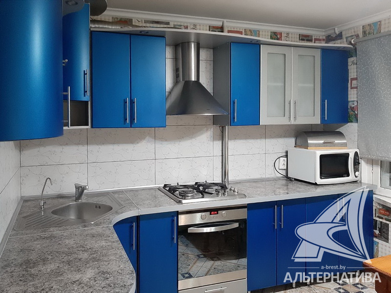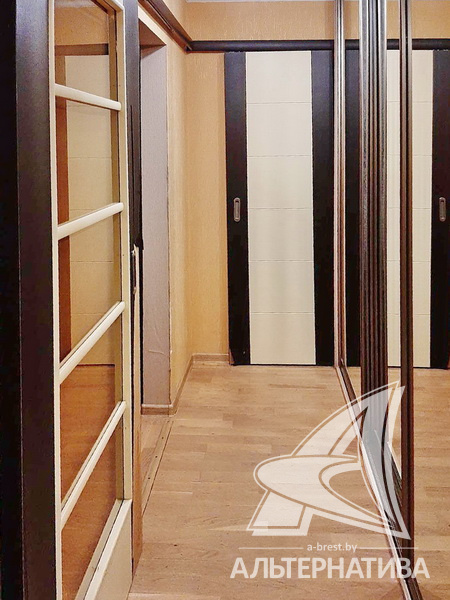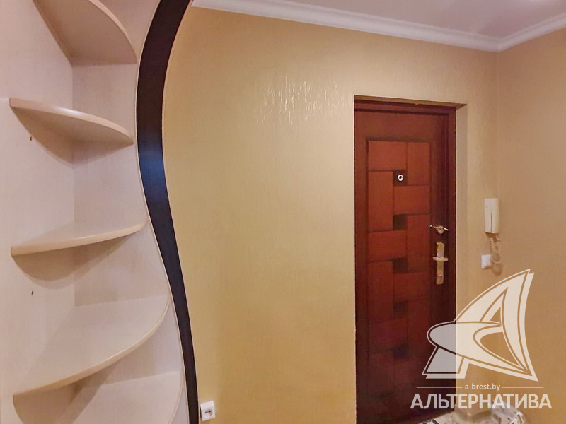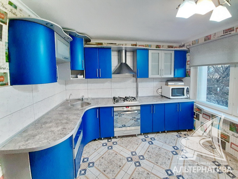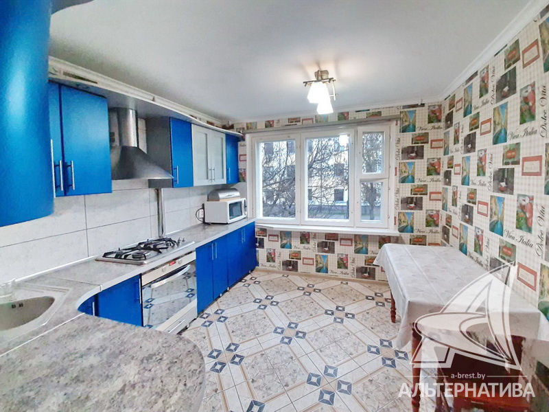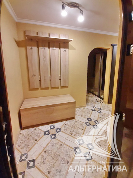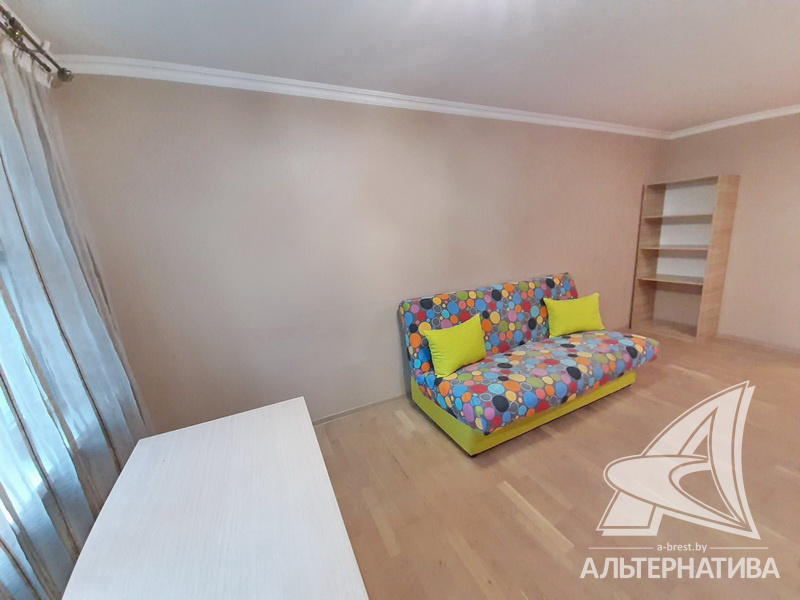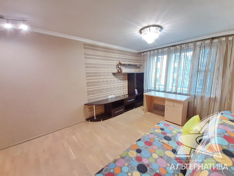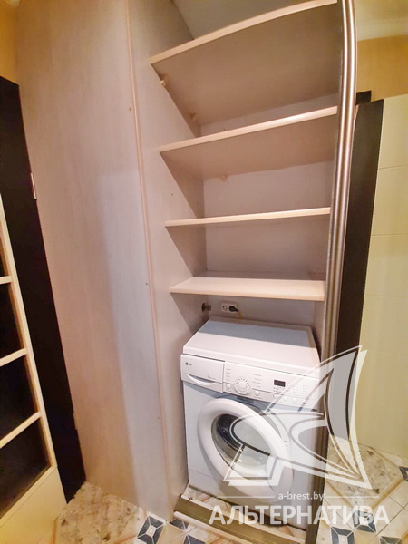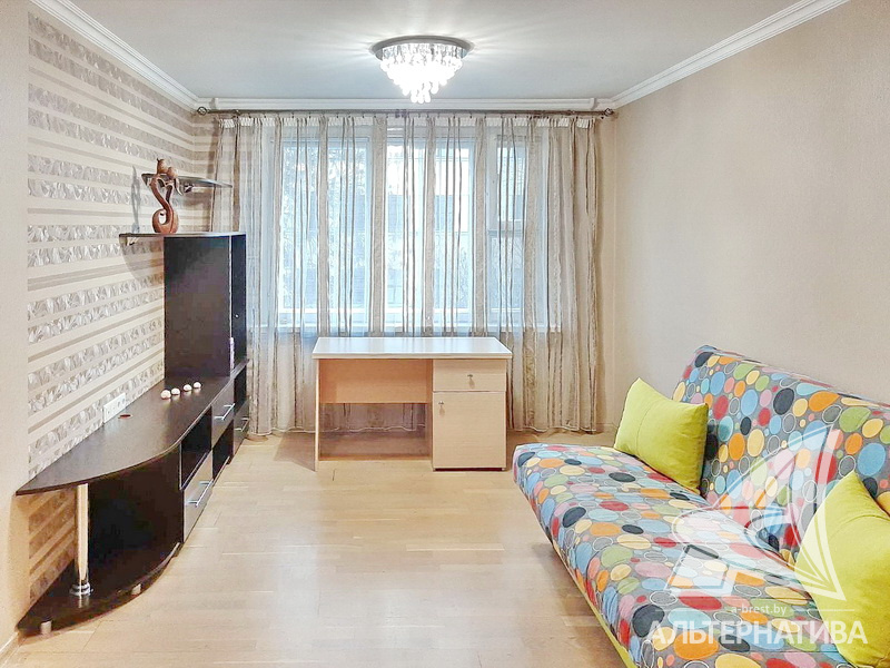 1-комнатная квартира, г. Брест, ул. Пушкинская, 1978 г.п., 2 / 5 панель, 41,8 / 41,8 / 17,0 / 9,9, санузел раздельный, деревянные окна, входная дверь металлическая, потолки - снежка, полы - ламинат и плитка (кухня), в санузле современная плитка, заменена сантехника, заменен полотенцесушитель, стальная ванна, телефон, домофон. Встроенный кухонный гарнитур, варочная поверхность, электрический духовой шкаф, холодильник, шкаф-купе в прихожей, гардеробная, корпусная и мягкая мебель (в комнате), мебель в ванной, стиральная машина. Квартира с хорошим ремонтом.