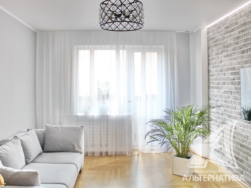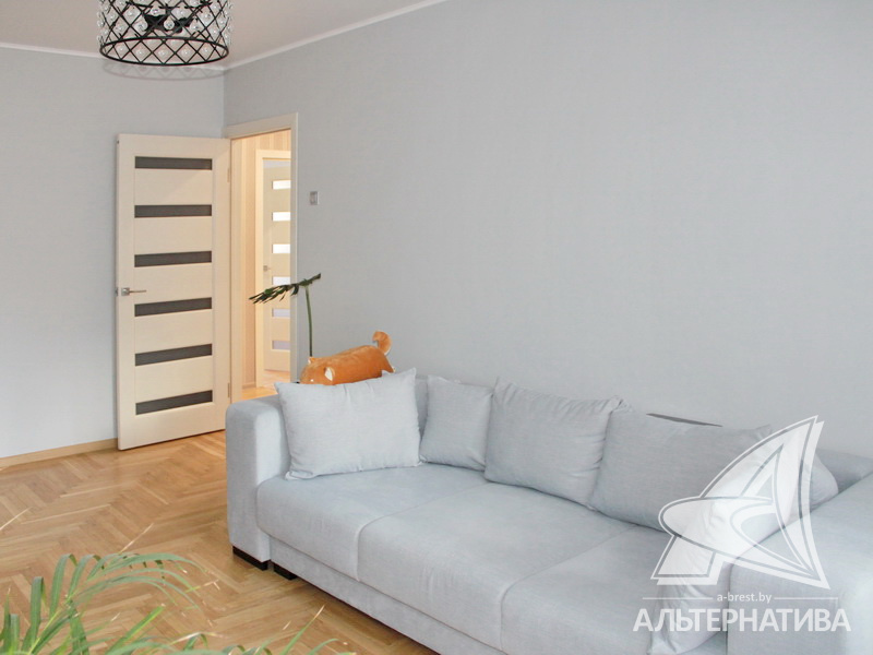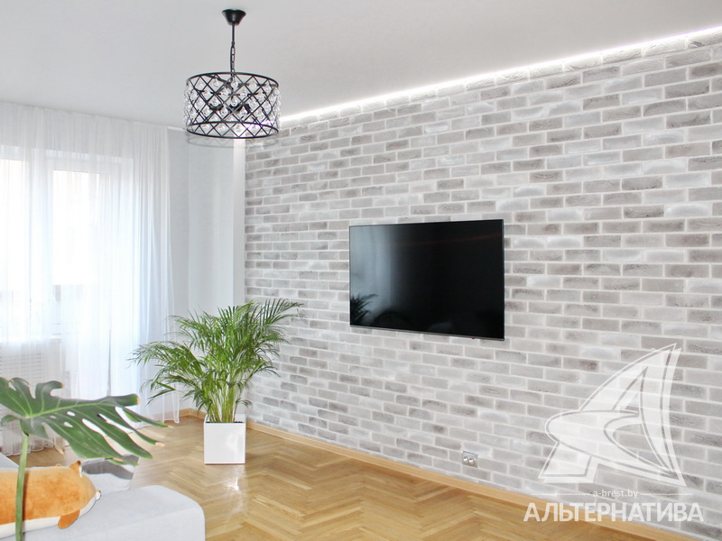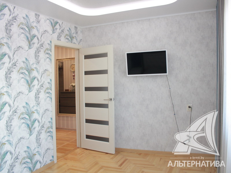 3-комнатная квартира, г. Брест, ул. Мошенского, 1990 г.п., 2 / 5 панель, 72,5 / 68,3 / 43,2 / 9,1, санузел раздельный, подвал, две лоджии застеклены, межкомнатные двери - массив, входная дверь металлическая, потолки - снежка (детская) и натяжные (коридор, зал, спальня), многоуровневые (зал) (2,55 м), полы - паркет и линолеум (кухня, коридор) (положены на стяжку), стены оклеены обоями, чугунная ванна, телефон, домофон. Кухонный гарнитур, шкаф-купе в детской, корпусная мебель, диван в детской. Спальня: кровать, телевизор, тумба. Мебель в прихожей, встроенные шкафы. Квартира с хорошим ремонтом. Чистый подъезд.