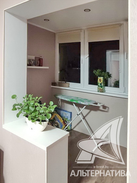 4-комнатная квартира, г. Брест, ул. Дубровская, 1991 г.п., 4 / 5 панель, 85,8 / 81,0 / 48,6 / 9,1, санузел раздельный, две лоджии застеклены, стеклопакеты, межкомнатные двери – шпон, входные двери двойные - металлическая и шпон, потолки - снежка (2,51 м), полы - ламинат и плитка (положены на стяжку), стены оклеены обоями, в санузле современная плитка, заменена сантехника, заменен полотенцесушитель, заменены сантехнические трубы, телефон, домофон. Кухонный гарнитур, шкаф-купе. Квартира с хорошим ремонтом. Квартира расположена на две стороны. Все окна выходят во двор.