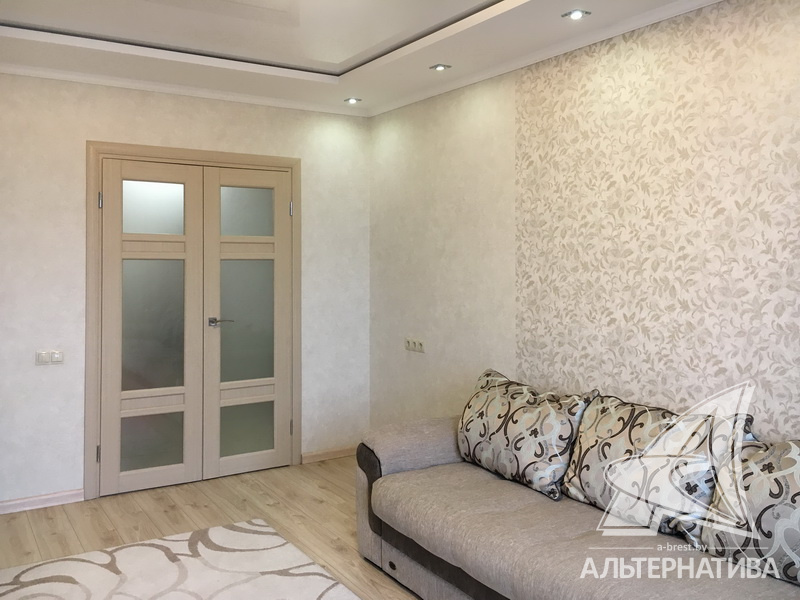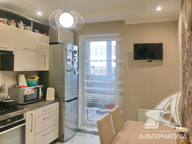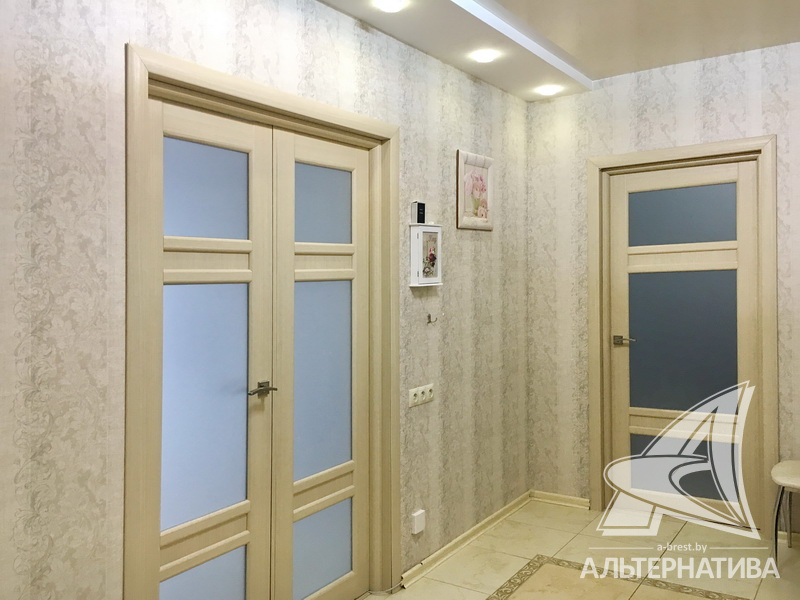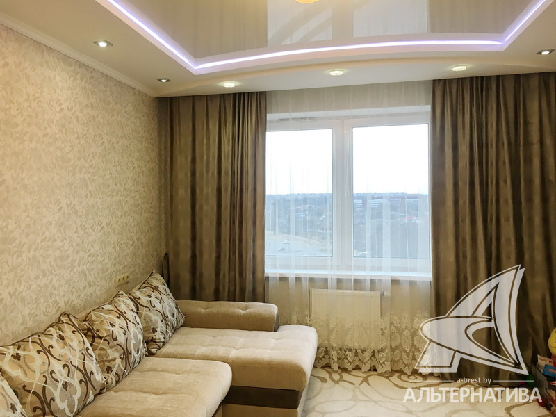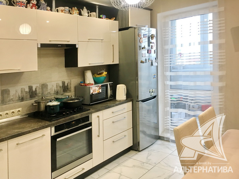 2-комнатная квартира, г. Брест, ул. Криштофовича, 2014 г.п., 8 / 10 панель, 62,6 / 57,2 / 32,2 / 10,3, санузел раздельный, две лоджии застеклены, стеклопакеты, межкомнатные двери – экошпон, входная дверь металлическая, потолки - снежка, натяжные, комбинированные (2,64 м), полы - ламинат (Германия), плитка (Испания), стены оклеены обоями, в санузле современная плитка, заменен полотенцесушитель, телефон, домофон. Встроенный кухонный гарнитур, бытовая техника, шкаф-купе. Квартира с хорошим ремонтом. Тамбур на две квартиры. Дом оборудован пандусом. Во дворе игровая детская площадка, парковка для автомобилей.