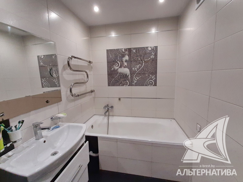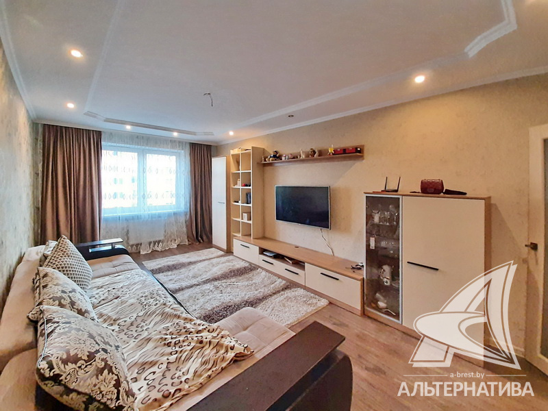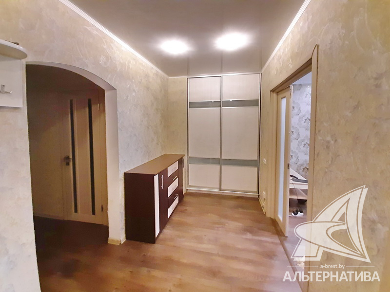 2-комнатная квартира, г. Брест, ул. Криштофовича, 2014 г.п., 8 / 10 панель, 65,0 / 63,3 / 34,0 / 10,6, санузел раздельный, лоджия застеклена, стеклопакеты, межкомнатные двери - массив, входная дверь металлическая, потолки - натяжные, комбинированные (гипсокартон и снежка) (2,64 м), полы - ламинат и плитка, стены оклеены обоями, в санузле современная плитка, заменена сантехника, заменен полотенцесушитель, акриловая ванна, телефон, домофон, видеодомофон. Кухонный гарнитур, варочная поверхность, духовой шкаф, вытяжка, посудомоечная машина. Встроенный шкаф-купе, мебель в ванной. Квартира с хорошим ремонтом. Квартира расположена на две стороны. Чистый подъезд. Один грузопассажирский лифт. Тамбур на две квартиры. Дом оборудован пандусом. Во дворе парковка для автомобилей.