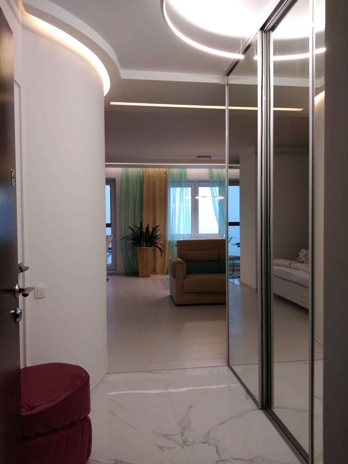 На срок от двух недель сдается новостройка в центре, с дизайнерской перепланировкой. Квартира-студия на 16 этаже с панорамной лоджией открывает головокружительный вид на центр города с высоты птичьего полета. В интерьере использован натуральный камень и натуральный дуб. Для Вашего удобства в ванной комнате кроме большой угловой ванны ( 1,7 м ) дополнительно оборудован стационарный душ. Рядом супермаркет, большие автостоянки, кафе, рестораны, кинотеатры, автовокзал, ж.д вокзал. Пешеходная Советская -улица газовых фонарей - 5 минут пешком, Брестская крепость - 20 мин пешком. В доме - салон красоты. Для комфортного проживания – кондиционер, скоростной интернет, Вай-фай, бытовая импортная техника: посудомойка, духовой шкаф, индукционная плита, встроенный холодильник, большой телевизор и многое другое; столовая и кухонная посуда. Пожалуйста, без животных, без шумных компаний. Паспорт. Предоплата за месяц. Договор.