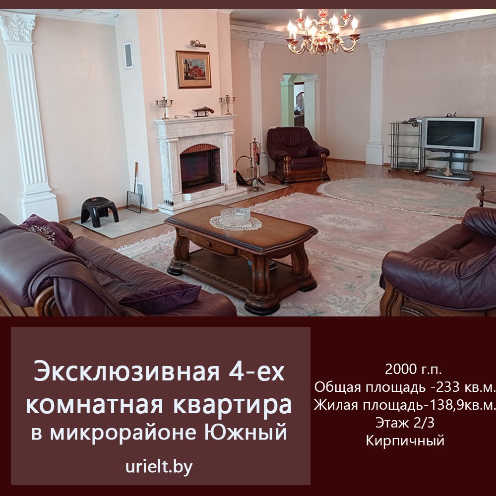 Продается эксклюзивная 4-ех комнатная квартира в микрорайоне Южный, 2-й этаж 3-ех этажного кирпичного дома, 2000 г.п.