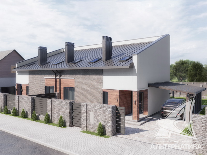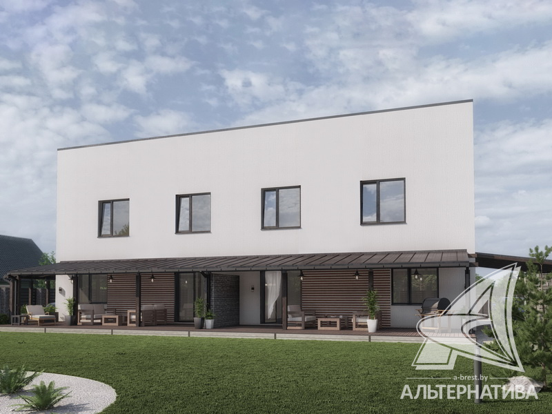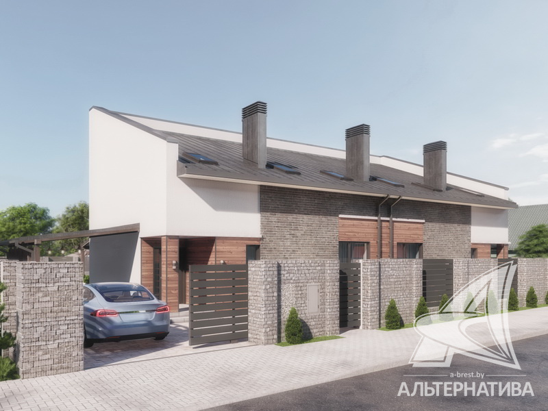 Квартира в блокированном жилом доме в г.Бресте. 2021 г.п. 2 этажа. Общ.СНБ - 153,6 кв.м, общ.- 145,3 кв.м, жил.- 99,7 кв.м, кух.- 10,0 кв.м. 4 комнаты, высота потолка - 2,85 м.
