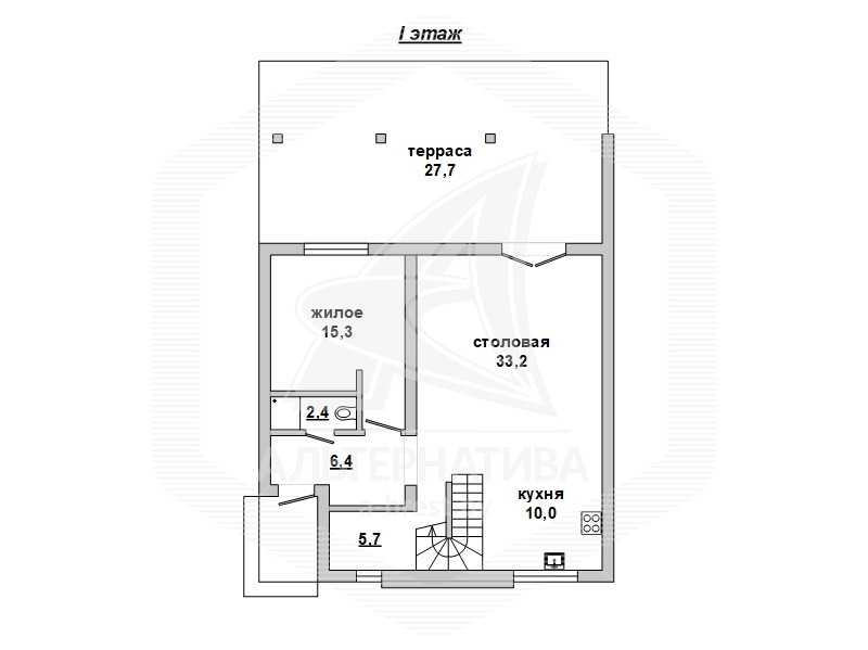 Хоз.постройки: терраса 27,7 кв.м. Участок - 0,0605 га (1/2 доли от 0,1209 га).