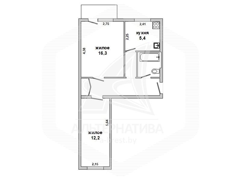 2-комнатная квартира, г. Брест, пр-т Машерова, 1959 г.п., 3 / 4 кирпич, 46,7 / 45,9 / 28,5 / 5,4, санузел совмещенный, балкон, стеклопакеты, межкомнатные двери - МДФ (новые), входная дверь металлическая, натяжные потолки (2,60 м), полы - доска под лак, стены оклеены обоями, в санузле современная плитка, заменены сантехнические трубы, газовая колонка (в кухне), телефон, домофон. Мебель по договоренности. Квартира с хорошим ремонтом.